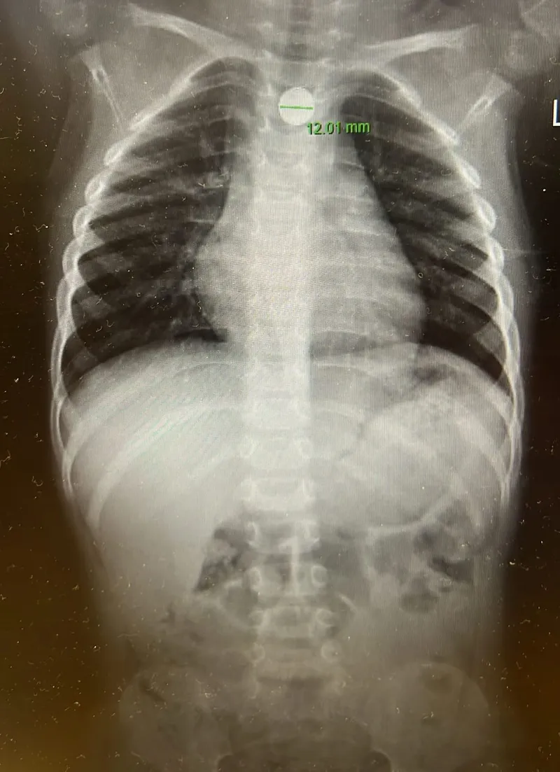 עם הגעתם למלר"ד ילדים, קיבל את פניהם ד"ר אהוד רוזנבלום. צילום חזה מהיר אישר כי הסוללה תקועה בוושט – מצב חירום רפואי מובהק. הילד הוכנס במהירות לחדר ניתוח תחת ידיו של ד"ר אייל זיפמן, מנהל שירות גסטרואנטרולוגיה ילדים. "הסוללה נמצאה נעוצה בוושט ונשלפה בשלמותה באמצעות גסטרוסקופיה", הסביר ד"ר זיפמן.