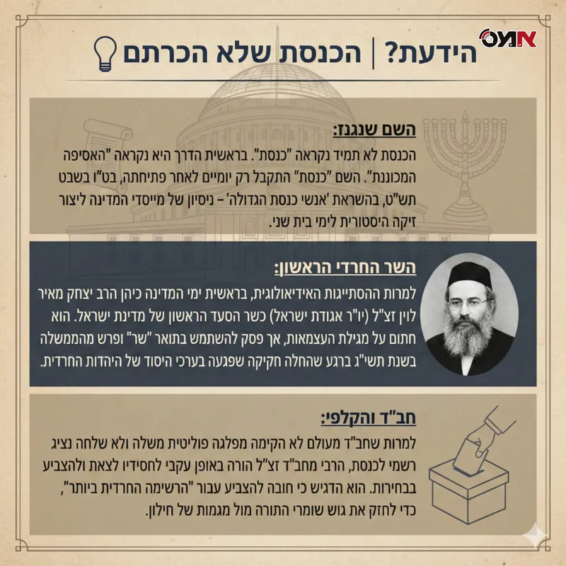 בט"ו בשבט תש"ט נפתחה בירושלים ה"אסיפה המכוננת", שהפכה בהמשך לכנסת הראשונה. באותם ימים, עולם התורה היה בשלבי שיקום מחורבן אירופה, וגדולי הדור עמדו בפני הכרעה היסטורית: האם להיבדל לחלוטין מהמוסד החדש, או שמא להיכנס לתוכו כדי להציל את מה שניתן. ראשית ימי המדינה התאפיינו במתח עמוק בין עולם התורה לבין המוסדות הציוניים החדשים. לצד גישות של שלילה מוחלטת, חרם ואי־הכרה, התקיימה כבר אז גישה אחרת – זהירה ומוגבלת – שביקשה לפעול בתוך המציאות כדי למנוע פגיעה חמורה בקדשי ישראל.