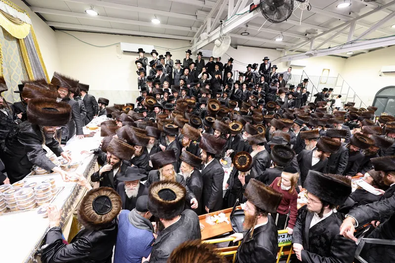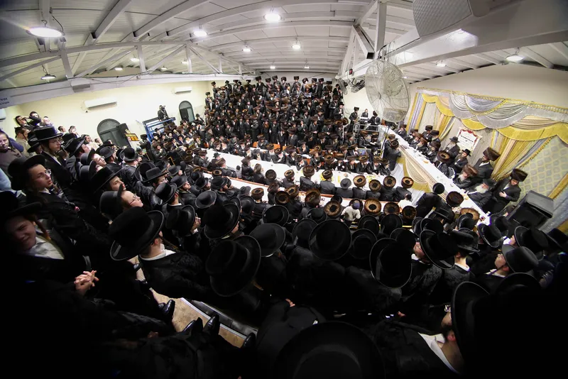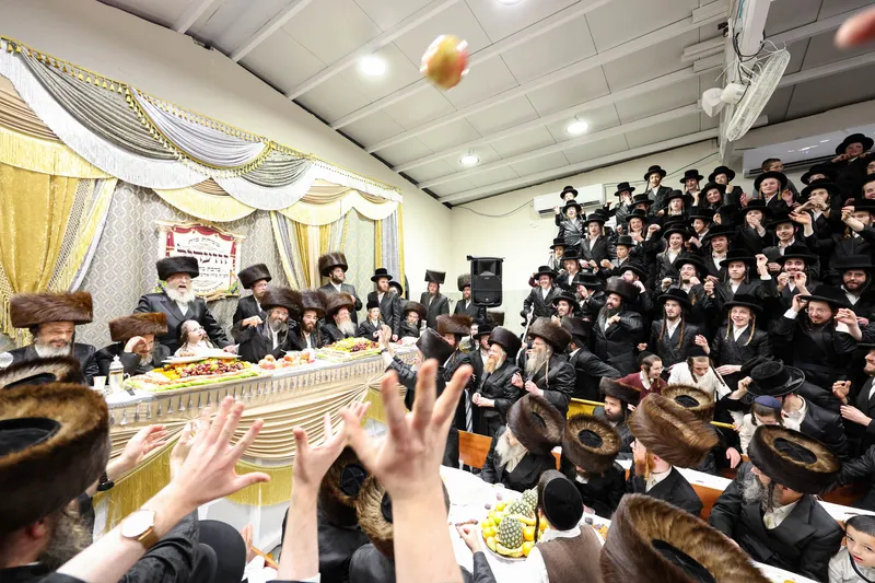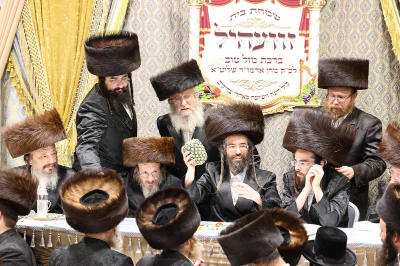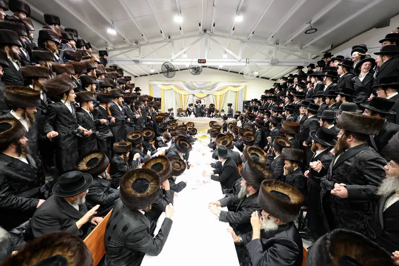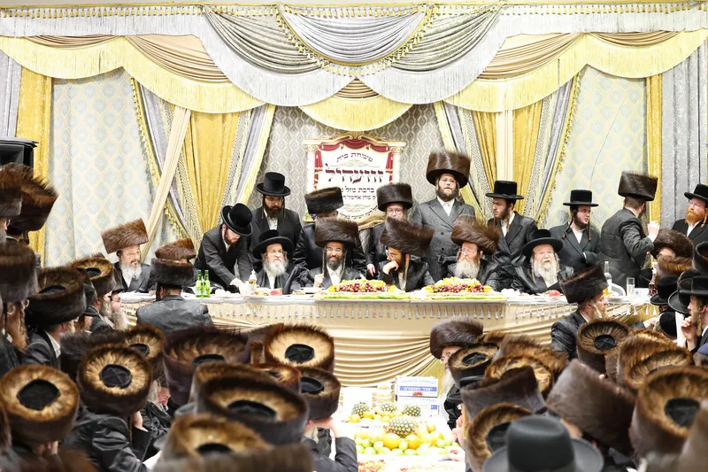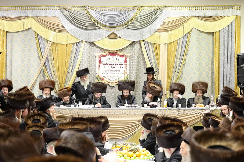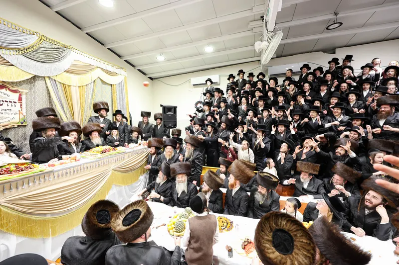 תיעוד משמחת השבע ברכות המרכזית בשילוב הטיש לרגל חמשה עשר בשבט בחצר הקודש זוויעהל