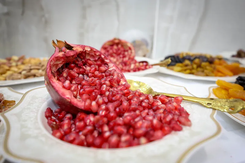 במהלך השמחה נהרו אדמורי"ם ורבנים לאחל מזל טוב לאדמו"ר על נישואי בנו, והאדמו"ר זרק תפוחים ואננס לעבר החסידים.