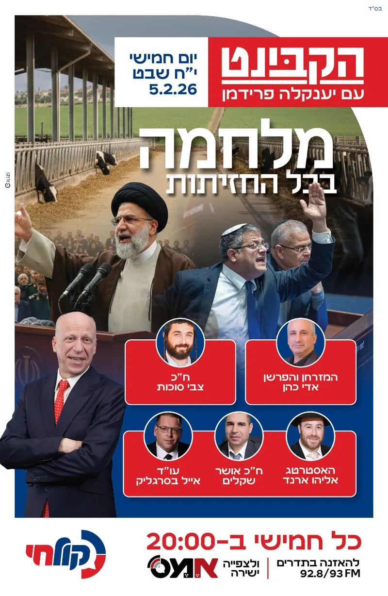 הערב (חמישי) בשעה 20:00 יתכנס פאנל הפרשנים "הקבינט" בהגשת יענקלה פרידמן.