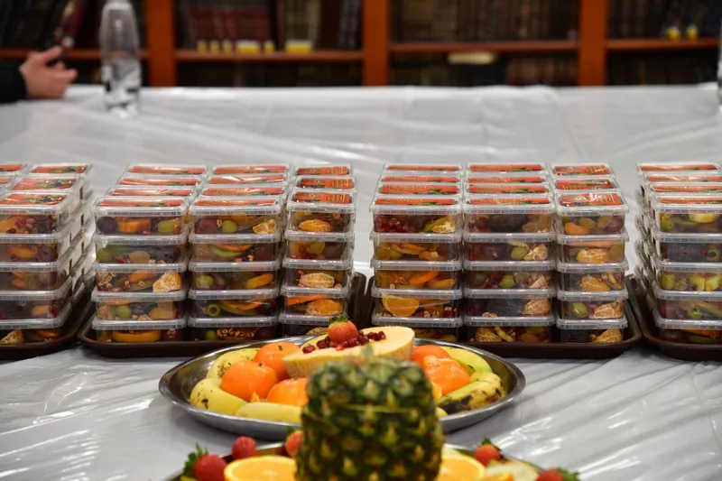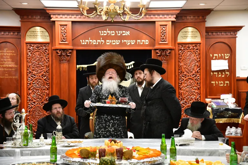 לאחר מכן בירך האדמו"ר על הפירות וברכת 'שהחיינו' בעמידה כמנהג אבותיו הק' לבית קרעטשניף, ולאחמ"כ התרומם הרבי לריקוד. בסוף הטיש עברו כל הקהל והאדמו"ר חילק פירות ארץ ישראל משבעת המינים.