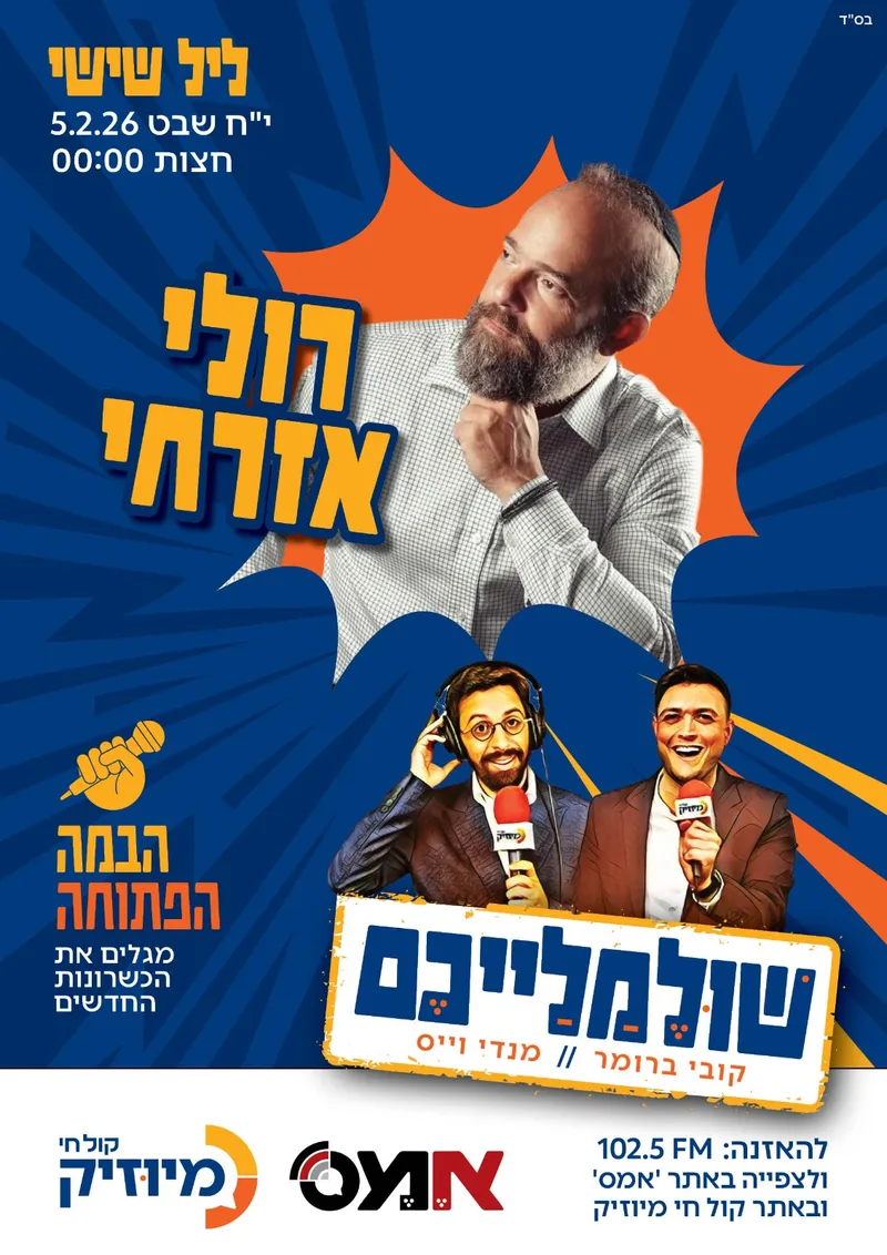 במרכז השידור יתארח הזמר, המלחין והמעבד המוסיקלי רולי אזרחי, דמות צבעונית ומוכרת בעולם המוזיקה החסידית. יחד הם צפויים לנפק ביצועים חיים, עיבודים ספונטניים וסיפורים מאחורי הקלעים של התעשייה.