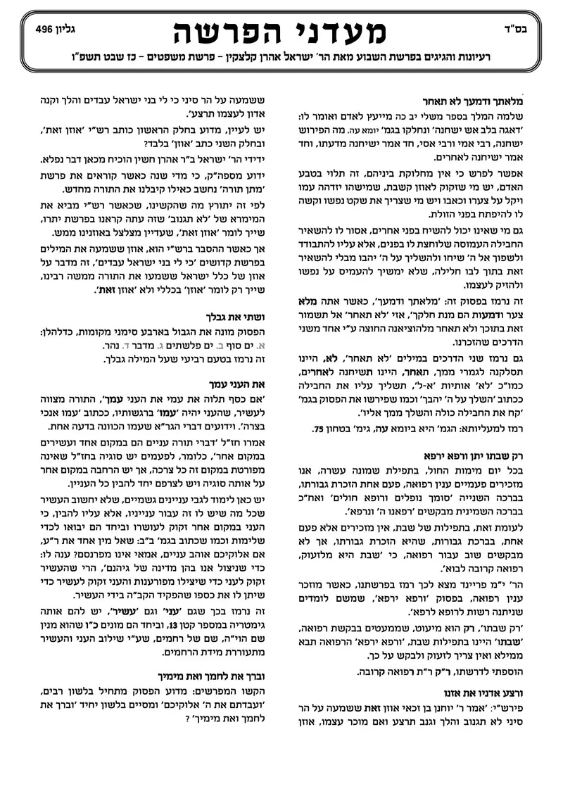 לידידי ומכרי קוראי הגליון 'מעדני הפרשה' שיחיו.