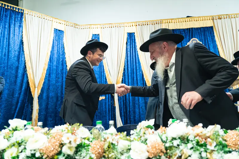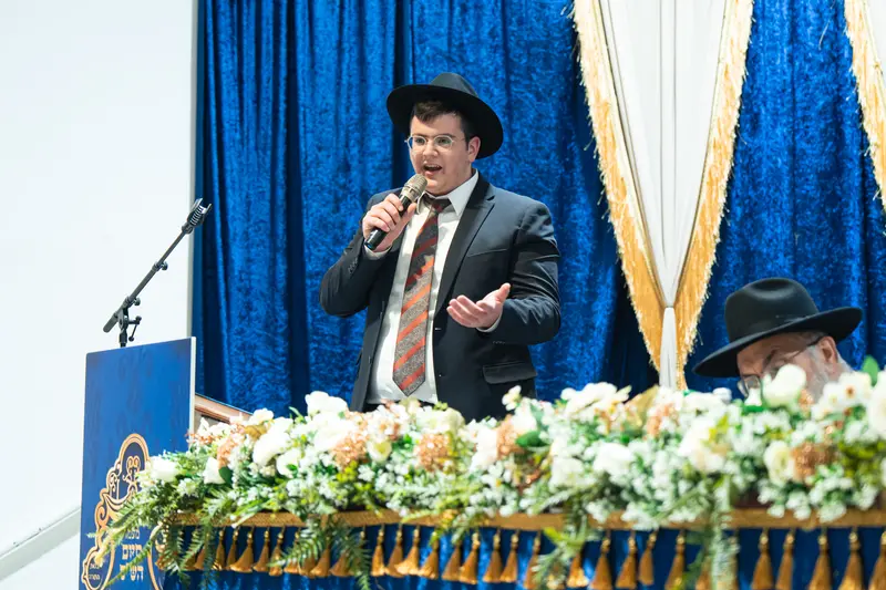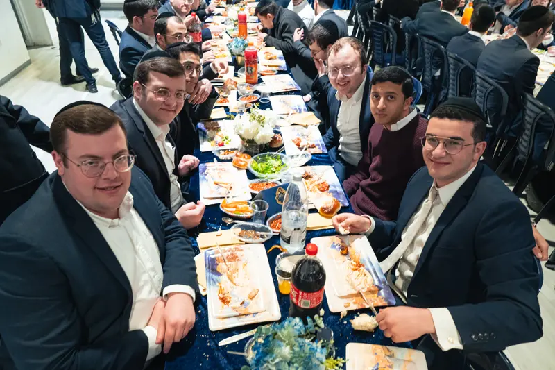 בסעודת המצווה נשאו דברים רבני הישיבה ובני המשפחה, ולאחר מכן פצחו בני הישיבה בריקודים ושמחה לכבודה של תורה. המעמד התקיים באולם הסמוך לישיבה, כאשר על הצד המוזיקלי הופקדו המאסטרו רולי מנדלזון ותזמורתו המורחבת, לצד הזמרים ר׳ שמוליק קליין, נער הפלא מנדי רוט ור׳ מאיר גולדשטיין, שהוסיפו נופך של התרוממות ושמחה למעמד.
