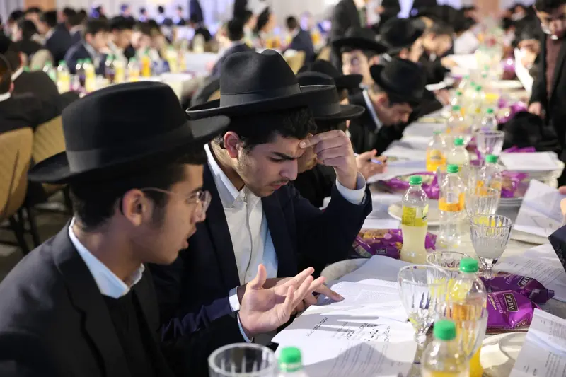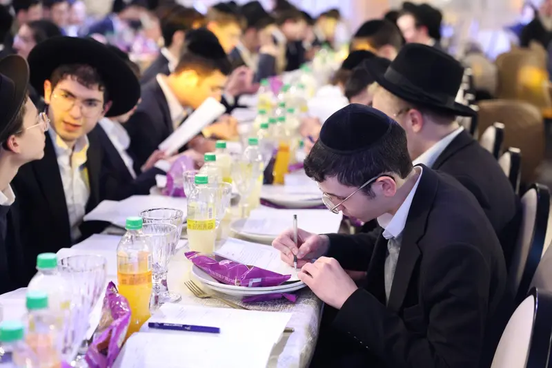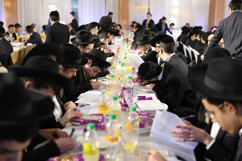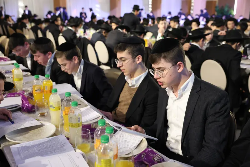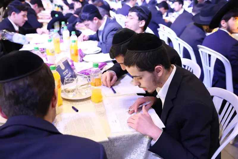 בצל הגזירות על עולם התורה: אולם נוף ירושלים הפך למרקחה של תורה בשיעור כללי של ראש הישיבה בפני 1200 בני הישיבות שעמלו בכתיבת סוגיות