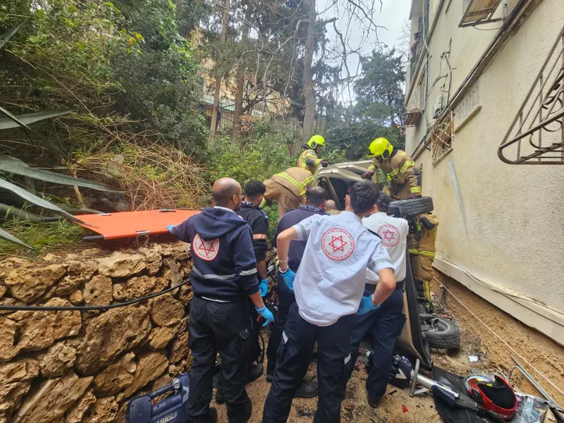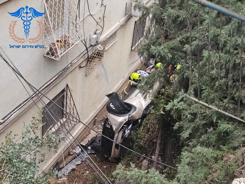 אירוע חריג ומבהיל התרחש אחר הצוהריים ברחוב אדמונד פלג בחיפה, כאשר רכב פרטי איבד שליטה, הידרדר במורד מדרון תלול ונפל מגובה רב אל תוך חצר בניין מגורים. הרכב, שנחת על צידו, נמחץ כתוצאה מהנפילה העוצמתית, כשבתוכו לכודות שתי נוסעות חסרות אונים שנאבקו לצאת מההריסות.