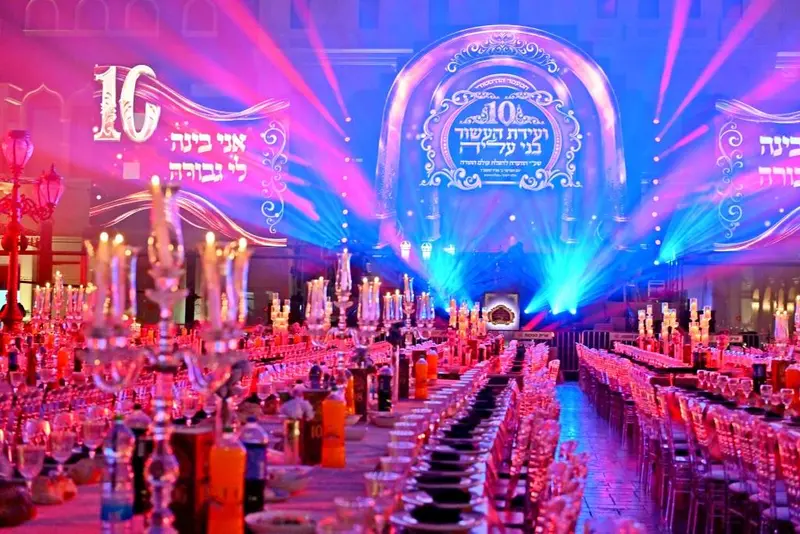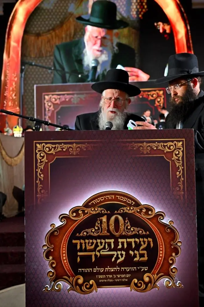 כינוס העשור לארגון 'בני עליה' שע"י הוועדה להצלת עולם התורה: כאלפיים אברכים עריקים התכנסו ביום חמישי האחרון באולמי די סיטי מישור אדומים בירושלים בראשות מנהיג הפלג הירושלמי הגאון רבי עזריאל אויערבאך.