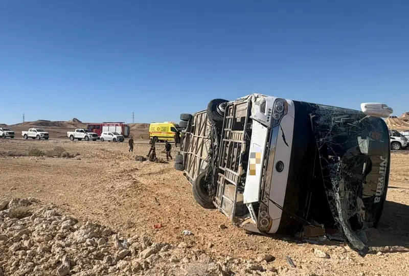 בוקר קשה עבר היום (חמישי) על כבישי הנגב, כאשר שתי תאונות דרכים חמורות במעורבות אוטובוסים התרחשו בתוך פחות משעה. הראשונה התרחשה בשעה 08:09 בצומת נבטים על כביש 25, בהתנגשות חזיתית בין אוטובוס לרכב פרטי. כוחות כבאות והצלה נאבקו לחלץ לכודה מהרכב הפרטי באמצעות כלים הידראוליים, כשבמקביל פונו לבית החולים סורוקה 11 פצועים, בהם אישה במצב קשה.