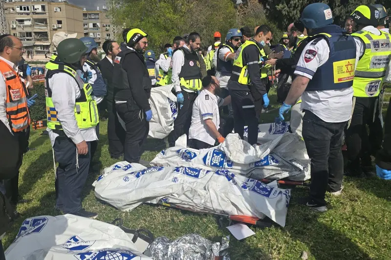 פרמדיק מד"א דרור עיני, סיפר: "ראינו בתים הרוסים, להבות ועשן שעלו מבתי מגורים, מכוניות מרוסקות והמולה רבה בזירה. ראיתי 3 פצועים שוכבים על הקרקע כשהם ללא סימני חיים ונאלצתי לקבוע את מותם בשטח. בהמשך, פרמדיקים נוספים של מד"א קבעו את מותם של עוד 6 נפגעים וצוותי מד"א מעניקים כעת טיפול רפואי ומפנים לבתי החולים 28 נפגעים בדרגות פציעה שונות, בניהם 2 קשה."