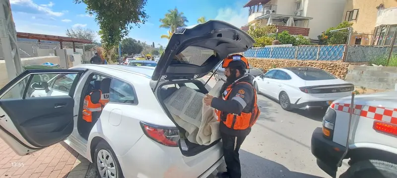 15:51 >> דוברות איחוד הצלה: חובשי איחוד הצלה איתרו קלפים של 3 ספרי תורה שנקרעו והועפו למרחק רב כתוצאה מעוצמת ההדף. השכנים סיפרו כי מדובר בפגיעה ישירה במקלט ששימש גם כבית כנסת.