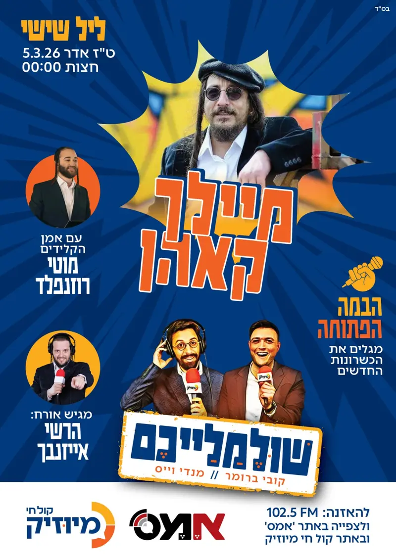 פורים מאחורינו, מלחמה בעיצומינו ופסח לפנינו. הלילה באולפן 'קול חי מיוזיק' תכנית ליל שישי – 'שולמלייכם' מיוחדת במינה להרמת מצב הרוח והמשכת השמחה הפורימית אל סוף השבוע.