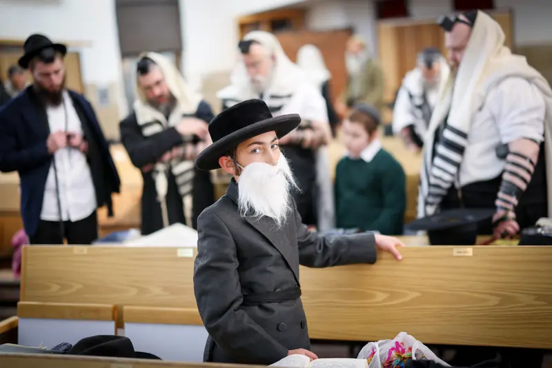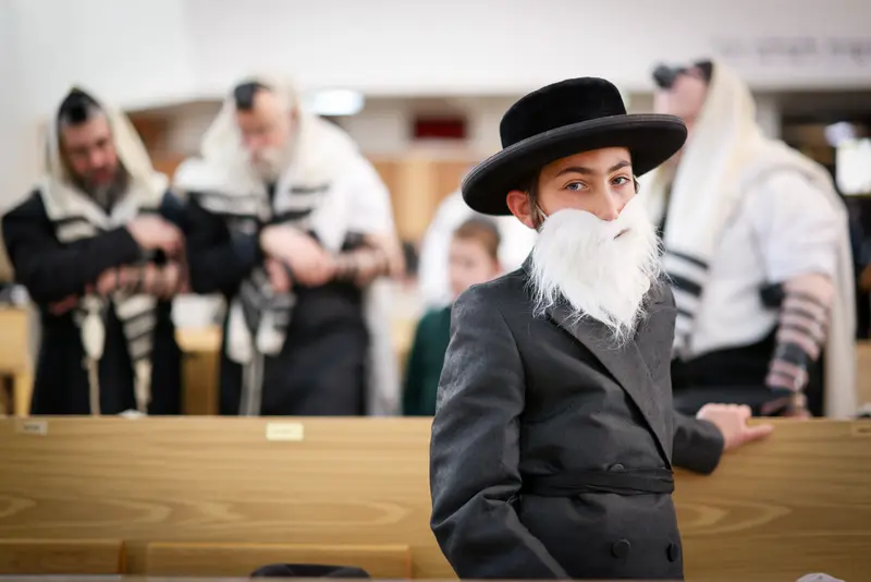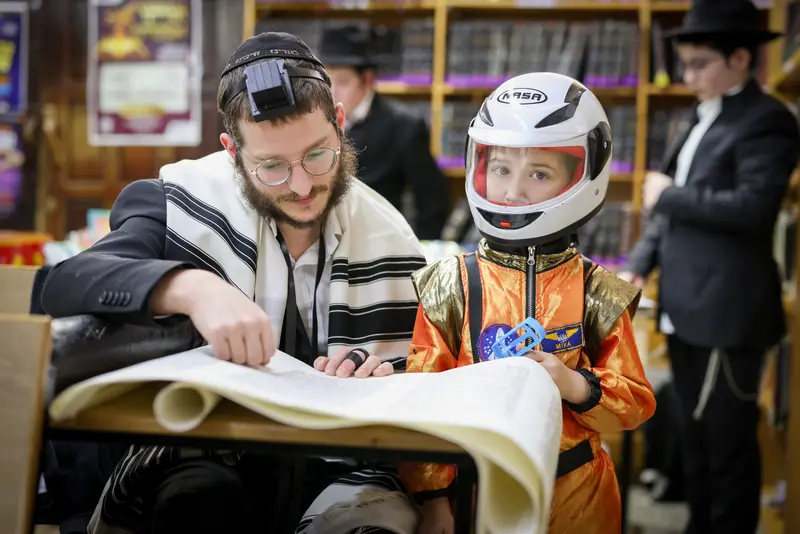 תיעוד מחגיגות הפורים בצפת תחת האזעקות מחיזבאללה ומאיראן. צילום: דוד כהן פלאש 90