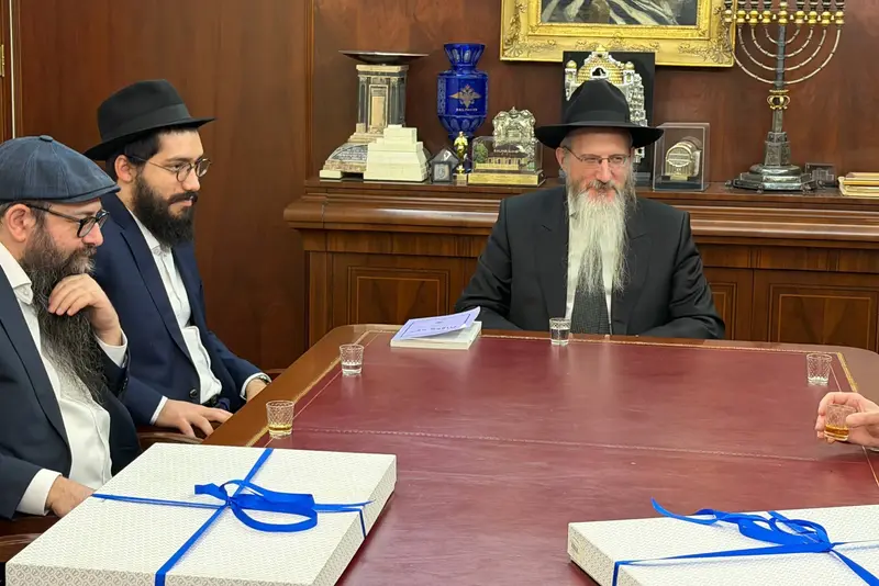 לקראת יציאת שני הרבנים החדשים אל ערי רבנותם, עלו ובאו אל לשכתו של הרב הראשי, כדי לקבל הדרכה ולהתברך להצלחה בעבודת הקודש. לצדם ישבו חותניהם המאושרים והנרגשים, השליח הרב משה רוכלין ר"מ ומרצה במכון חמ"ש, והשליח הרב ישראל פלדרשוב, מפקח כשרות ברבנות הראשית של רוסיה.