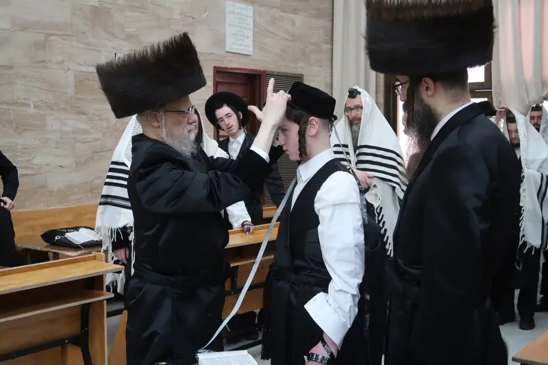 תיעוד ממעמד הנחת תפילין ושמחת הבר מצווה לנכדו של האדמו"ר מסערט ויז'ניץ ברמת ויז'ניץ בחיפה