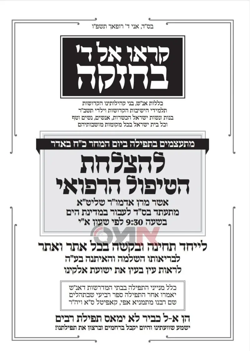 בימים הקרובים צפוי מרן האדמו"ר לשוב ארצה, ובשבועיים הקרובים צפויות להתקבל התוצאות המלאות.