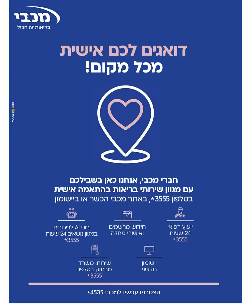 'מכבי' באמצעות 'בולטון-פוטנציאל' מדברת על חדשנות וטכנולוגיה, עם בוט בינה מלאכותית (AI) לייעוץ 24 שעות. מאוחדת פורטת בדיוק על נקודת הכאב של הורים מודאגים ושואלת "לחכות עד הבוקר או לרוץ למוקד ג'וניור?".