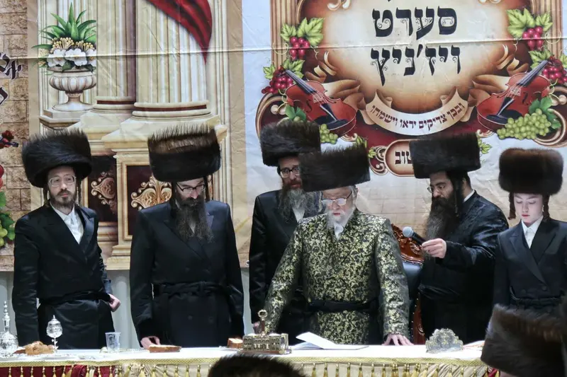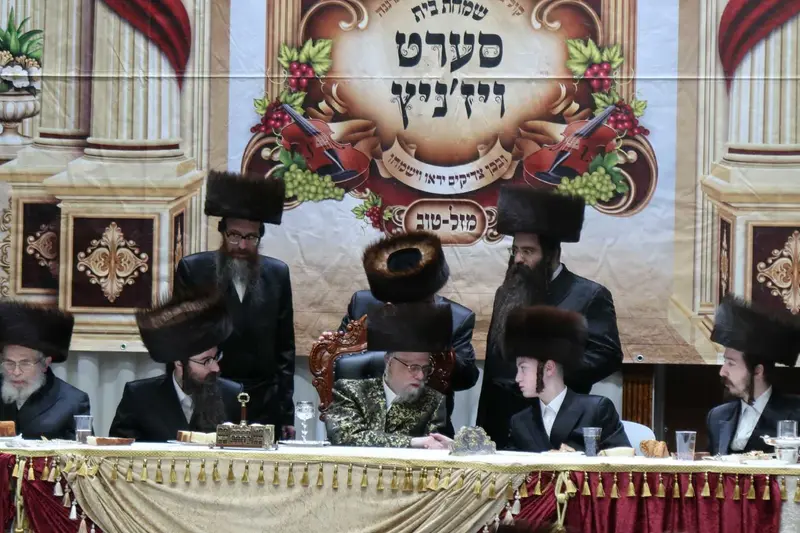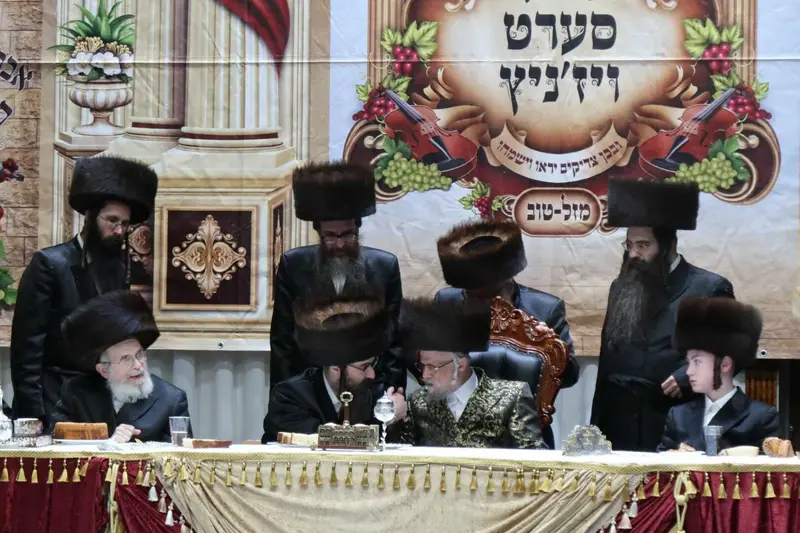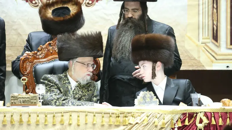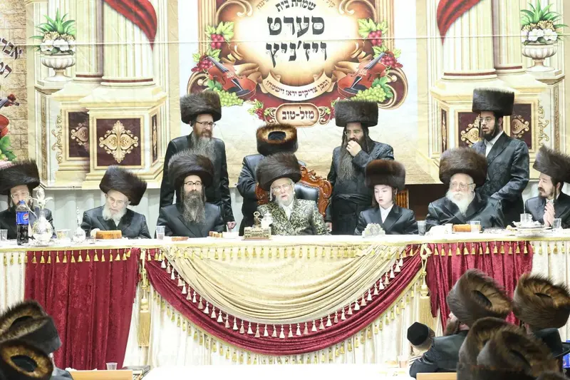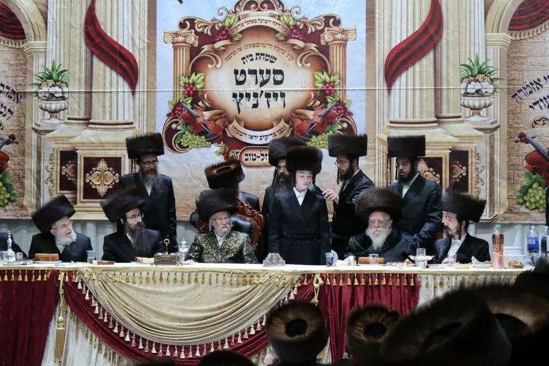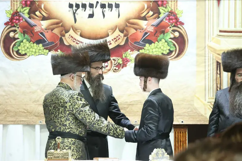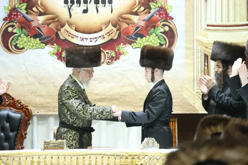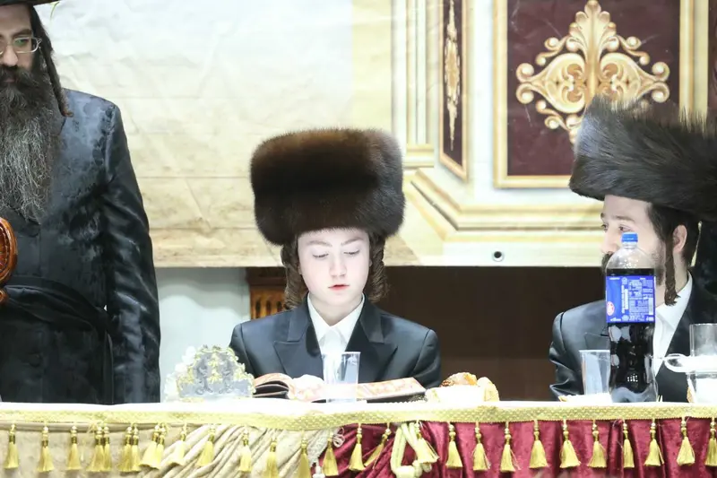 תיעוד משמחת הבר מצוה לנכד האדמו"ר מסערט ויז'ניץ, הבחור החשוב משה יהושע הגר בהיכל הטישים ברמת ויז'ניץ בחיפה