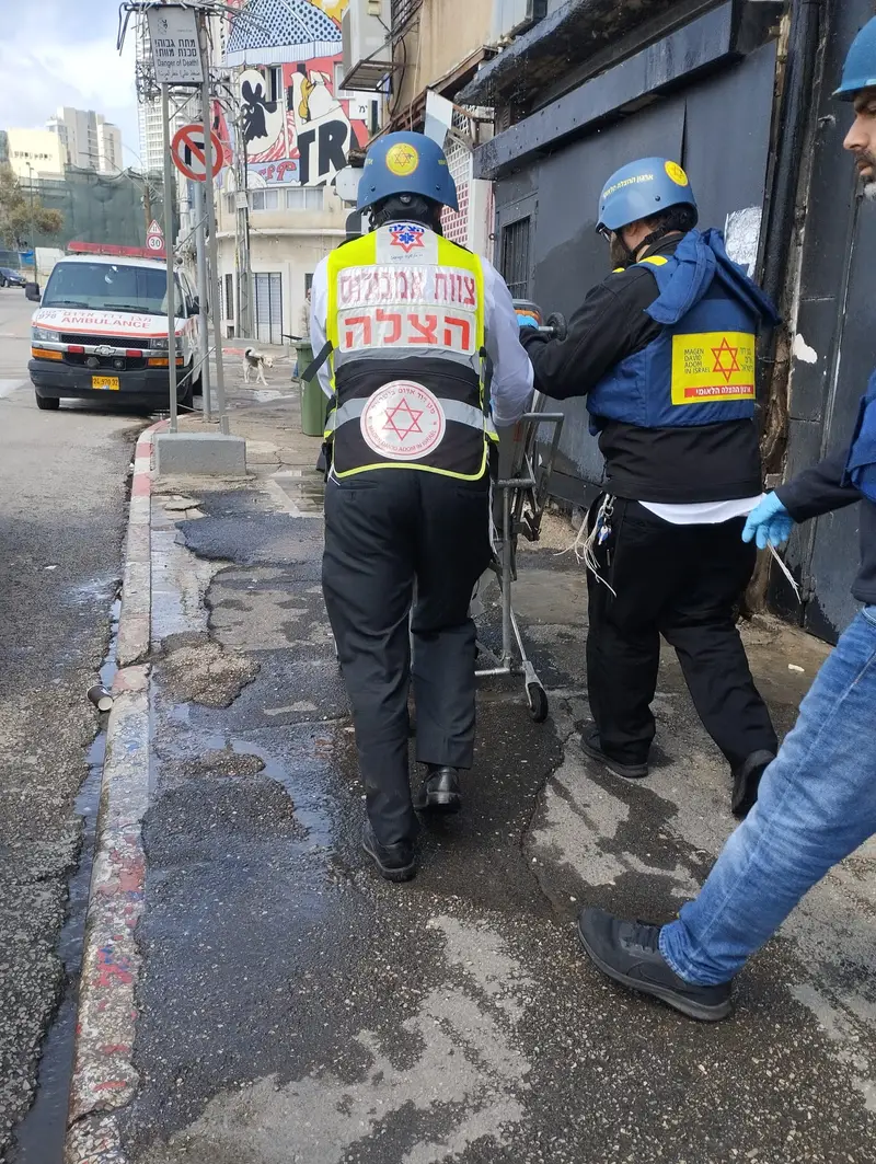 חובש רפואת חירום במד״א פבל בלזר סיפר: "מדובר בזירה עם עשן כבד והרס. קיבלנו דיווח על פגיעה במקום והגענו למקום תוך דקות בודדות באמבולנסים, ניידות טיפול נמרץ ואופנועי מד״א. החלנו בביצוע סריקות כדי לאתר נפגעים ואנחנו ממשיכים בסריקות גם ברגעים האלה".