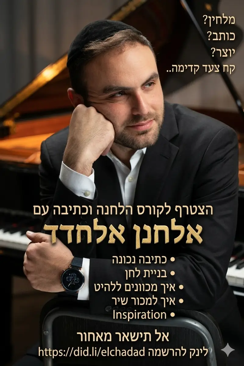 המלחין אלחנן אלחדד, מהבולטים במוזיקה היהודית, שמאחוריו מאות יצירות משלל ז’אנרים – יוצא לדרך עם קורס כיתת אמן באימון פרונטלי ומוחשי, להעברת כלים מעשיים לשיפור, לדיוק ולחידוד פרי היצירה.