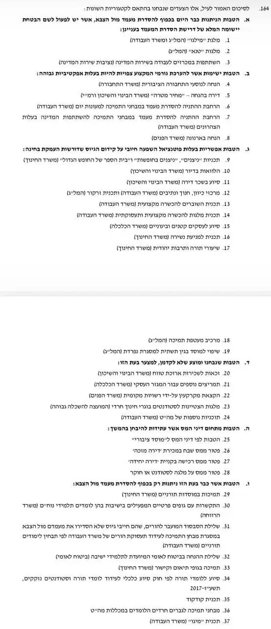 המסמך לא עוצר במישור האישי. היועמ"שית דורשת להחיל אכיפה מלאה על הטבות שכבר מותנות בהסדרת מעמד, כמו תמיכה במוסדות תורניים ("דתות"), הנחות בביטוח לאומי ותוכניות לנוער נושר. לשיטתה, על כל גופי המדינה להגביר את מאמצי האכיפה "בטווח הזמן המיידי", כולל נקיטה בהליכים פליליים ומשמעתיים. המסר של מיארה ברור: מניעת כל מימון ממשלתי התומך במי שבוחר להישאר בבית המדרש על פני השירות הצבאי.