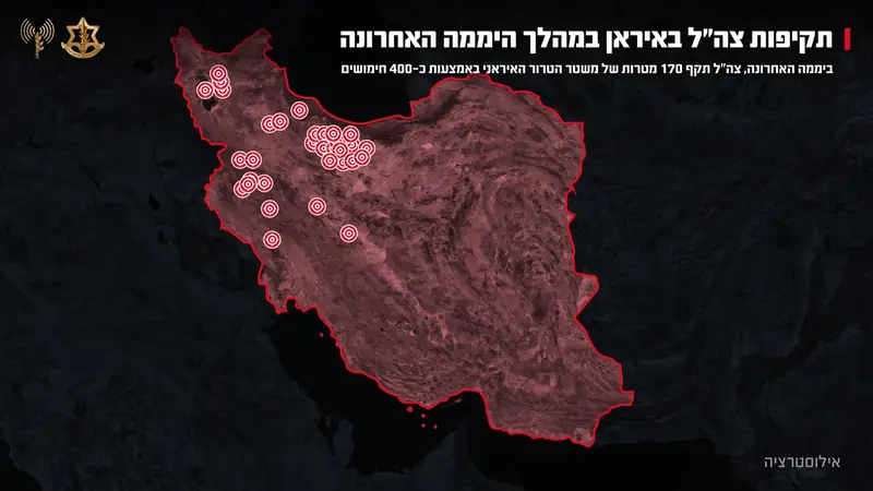 צה"ל ממשיך להעמיק את התקיפות נגד תשתיות המשטר האיראני, וביממה האחרונה הותקפו כ־170 מטרות באמצעות כ־400 חימושים מדויקים. על פי הודעת דובר צה"ל, הבוקר הושלם מטס תקיפות נוסף של חיל האוויר, בהכוונת אמ"ן, לעבר תעשיות צבאיות מרכזיות ברחבי טהרן.