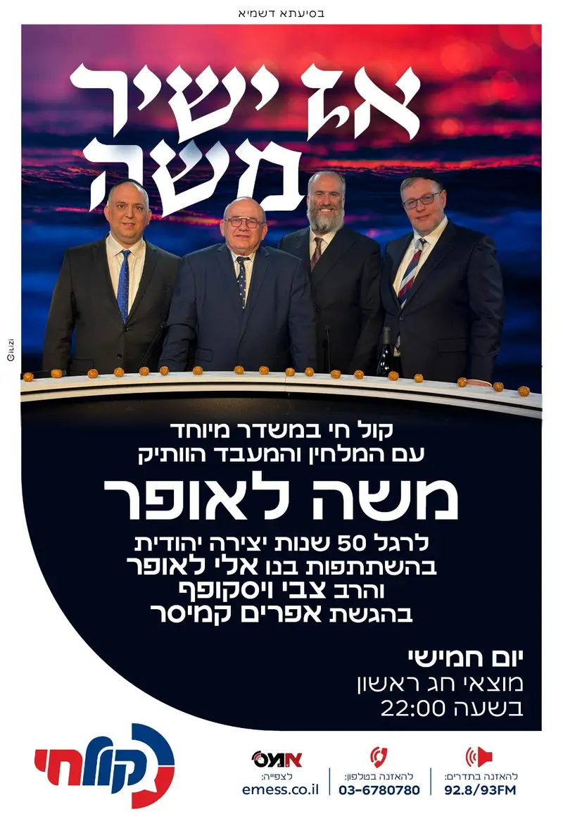 "אז ישיר משה" • ביום חמישי, מוצאי חג ראשון של פסח, משדר חגיגי היסטורי ומיוחד ב'קול חי' וב'אמס' לציון 50 שנות יצירה של המלחין והמעבד האגדי משה לאופר, מהדמויות המשפיעות ביותר במוזיקה החסידית.