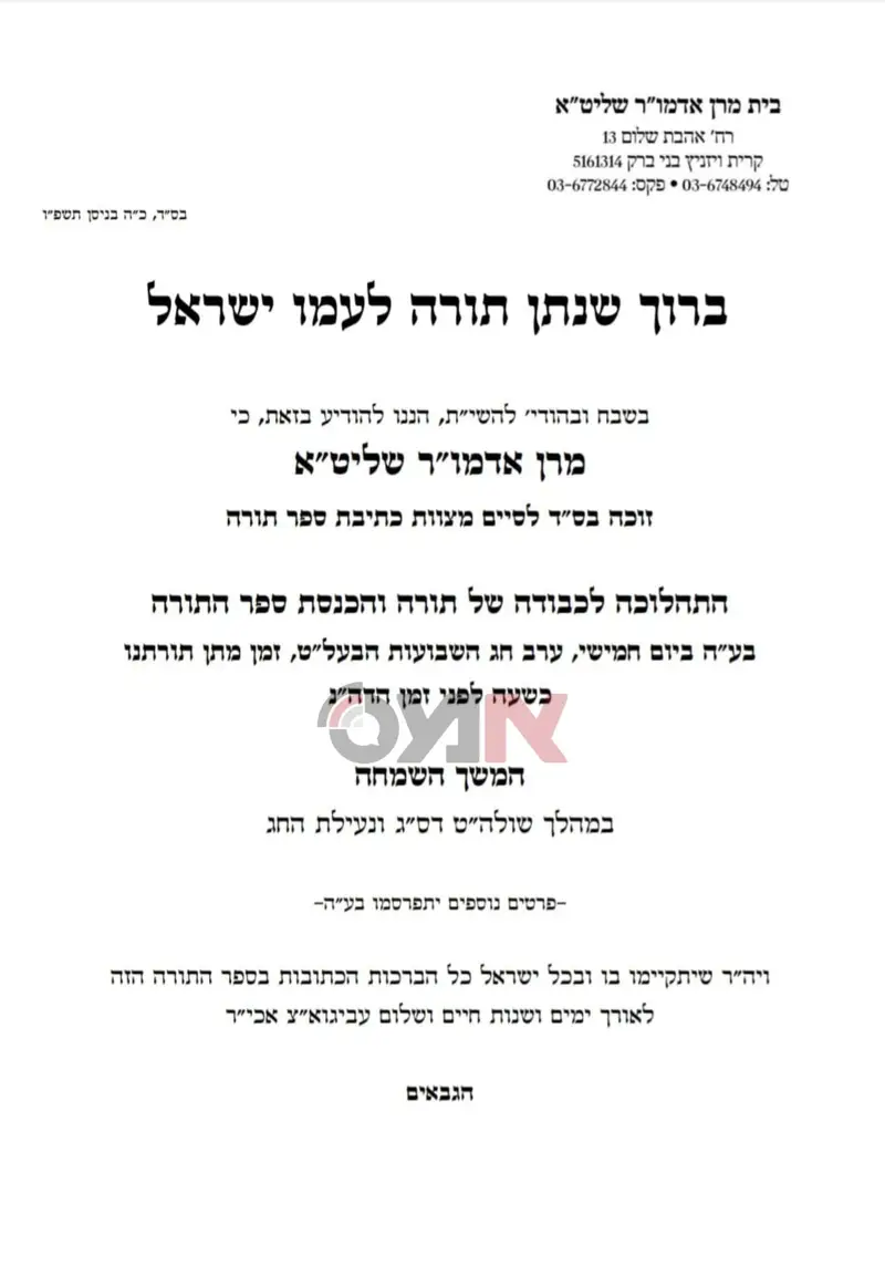 רבבות חסידי ויז'ניץ בארץ ובעולם התבשרו בשעה האחרונה על אחד האירועים המרגשים והמפתיעים ביותר בתולדות החצר בעשור האחרון. מדובר במעמד הכנסת ספר תורה אישי ופרטי של מרן האדמו"ר מויז'ניץ, שנכתב בחשאיות מוחלטת ויוכנס ברוב פאר והדר להיכל בית המדרש הגדול בשיכון ויז'ניץ.
