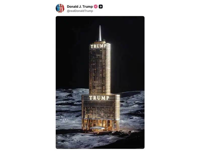 התמונה, שככל הנראה נוצרה באמצעות בינה מלאכותית, מציגה מבנה זוהר המזוהה עם המותג של טראמפ, כשהוא נטוע על הקרקע הירחית. זמן קצר לאחר הפרסום, החלו לזרום תגובות רבות, כאשר חלק מהמשתמשים תהו האם מדובר ברמיזה לתוכניות עתידיות או במסר סמלי בלבד.