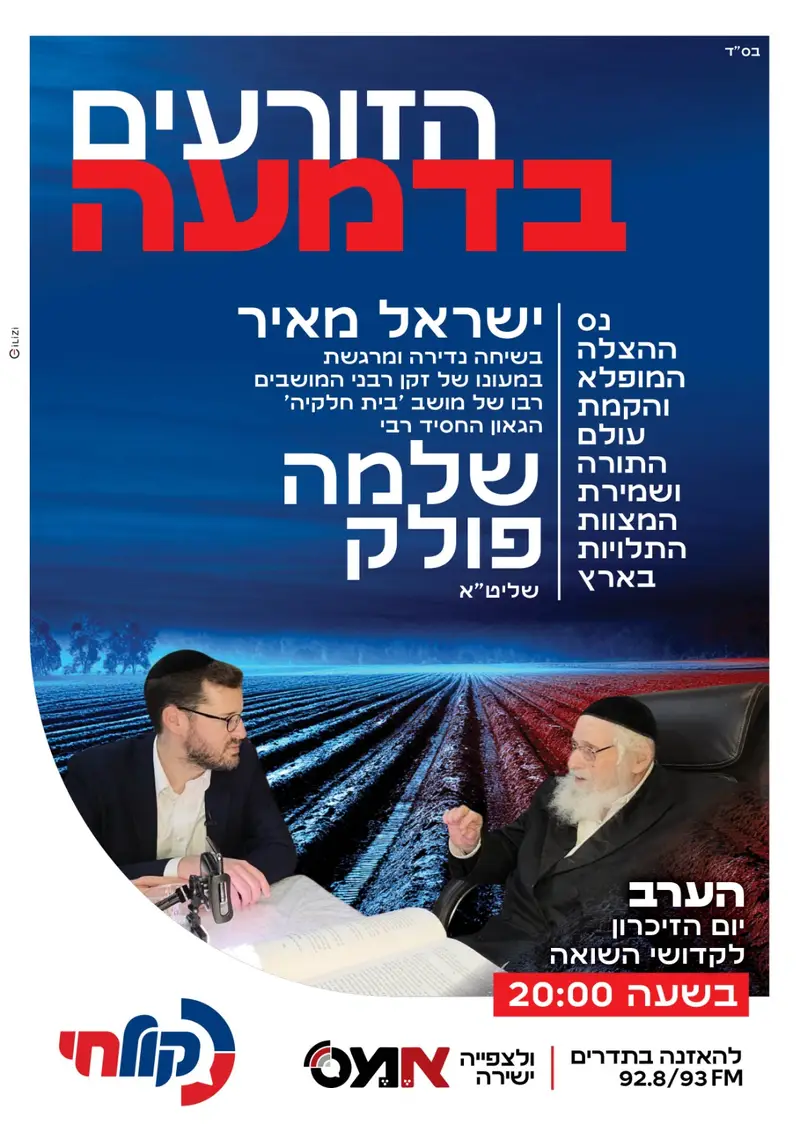 הערב, יום הזיכרון לקדושי השואה, תשודר ב'קול חי' (ולצפייה ישירה כאן באתר 'אמס') שיחה מיוחדת ומרגשת עם הרב שלמה פולק, זקן רבני המושבים ורבו של מושב בית חלקיה. בשיחה עם ישראל מאיר, יספר הרב בהרחבה על נס הצלתו מהתופת ועל הדרך הארוכה שעבר עד להקמת עולם של תורה בארץ ישראל.
