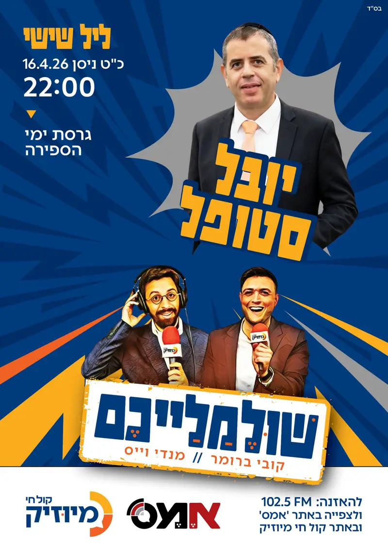 'שולמלייכם' ב'קול חי מיוזיק' גם בימי ספירת העומר. החל מהשעה 22:00, המגישים קובי ברומר ומנדי וייס יארחו לשידור מיוחד את המאסטרו יובל סטופל, דמות מפתח במוזיקה החסידית ומי שמלווה את גדול הזמר אברהם פריד לאורך שנים.