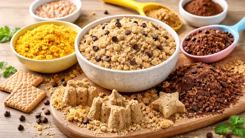 כעת אפשר להפוך את זה לחוויה צבעונית ומגוונת: מחלקים את התערובת לקערות ומוסיפים טעמים וצבעים לפי בחירה. למשל, קקאו יתן גוון חום ושוקולדי, כורכום ייצור צבע צהוב, ואפשר גם לשלב מיני שוקולד צ’יפס שיוסיפו “אבנים קטנות” בתוך החול. הילדים יכולים לשבת, למעוך, לבנות וליצור בחופשיות – פעילות שמרגיעה, מעסיקה לאורך זמן וגם הרבה פחות מלכלכת מבצק רגיל. והבונוס הגדול הוא שהכל אכיל, כך שאין לחץ מהלכלוך.