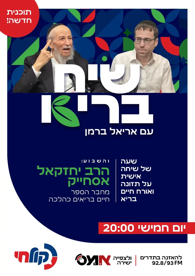 אריאל ברמן מארח בתוכניתו החדשה "שיח בריא" את הרב יחזקאל אסחייק, מחבר הספרים חיים ללא עישון וחיים בריאים כהלכה, לשיח על תזונה ואורח חיים בריא.
