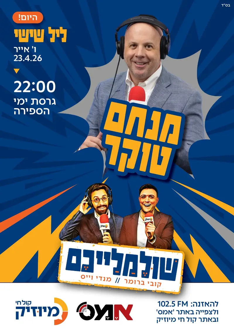 והערב בשעה 22:00 (שעה חדשה), מנחם טוקר מתארח אצל צמד המגישים קובי ברומר ומנדי וייס.