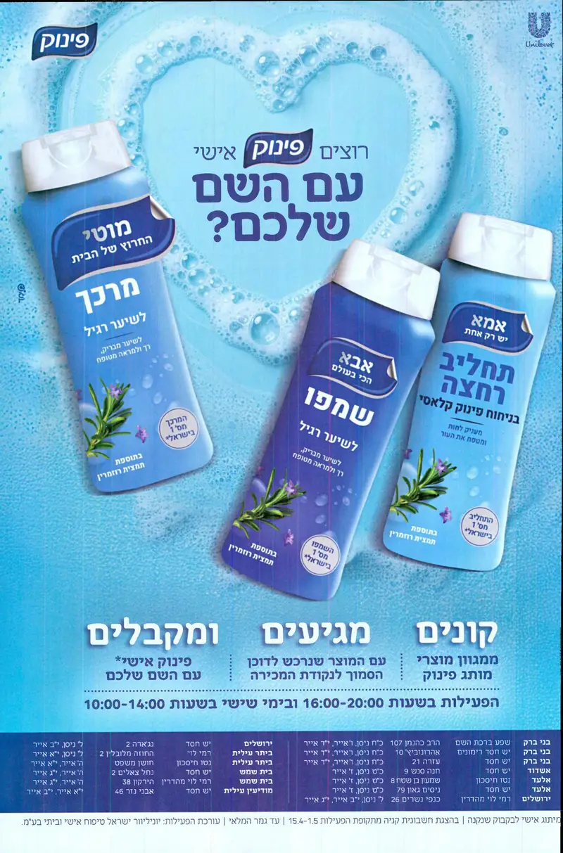 מי שלקחו את החוויה צעד קדימה זה המותג 'פינוק', עם מהלך פרסונליזציה של בקבוקים בהובלת משרד הפרסום 'מימד', עם הקדשות אישיות כמו "אמא יש רק אחת" או "מוטי החרוץ של הבית". המהלך שלהם לא נגמר רק בפרסום – אלא מתחבר לשטח. בפעילות קד"ם שטח שמתוקשרת ברדיו ודוכנים ברחבי הארץ שמחברים את הצרכנים לחוויה הפרסונלית.