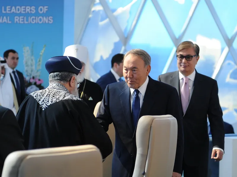 נשיא קזחסטן נורסולטן נזרבייב ערך אמש (רביעי) קבלת פנים מיוחדת לעשרות בכירי דת המשתתפים בימים אלה בקונגרס העולמי למנהיגי דתות בבירה, אסטנה. בשולי קבלת הפנים שוחח הנשיא עם הראשון לציון, הגאון רבי יצחק יוסף שליט"א, וציין בפניו כי הוא נאומו אודות הצורך של כל הצדדים לפסוע שלושה צעדים לאחור למען השלום, כפי שעושים בסיום תפילת העמידה, הרשימו מאוד. הגר"י מצידו הודה לנשיא על הידידות עם מדינת ישראל וברכו על כך.