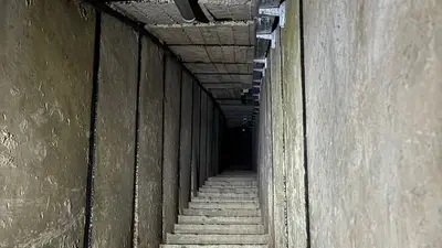 פועלים פלסטינים בסמוך לילדים וילד שנלכד תחת רשת ברזל כבדה