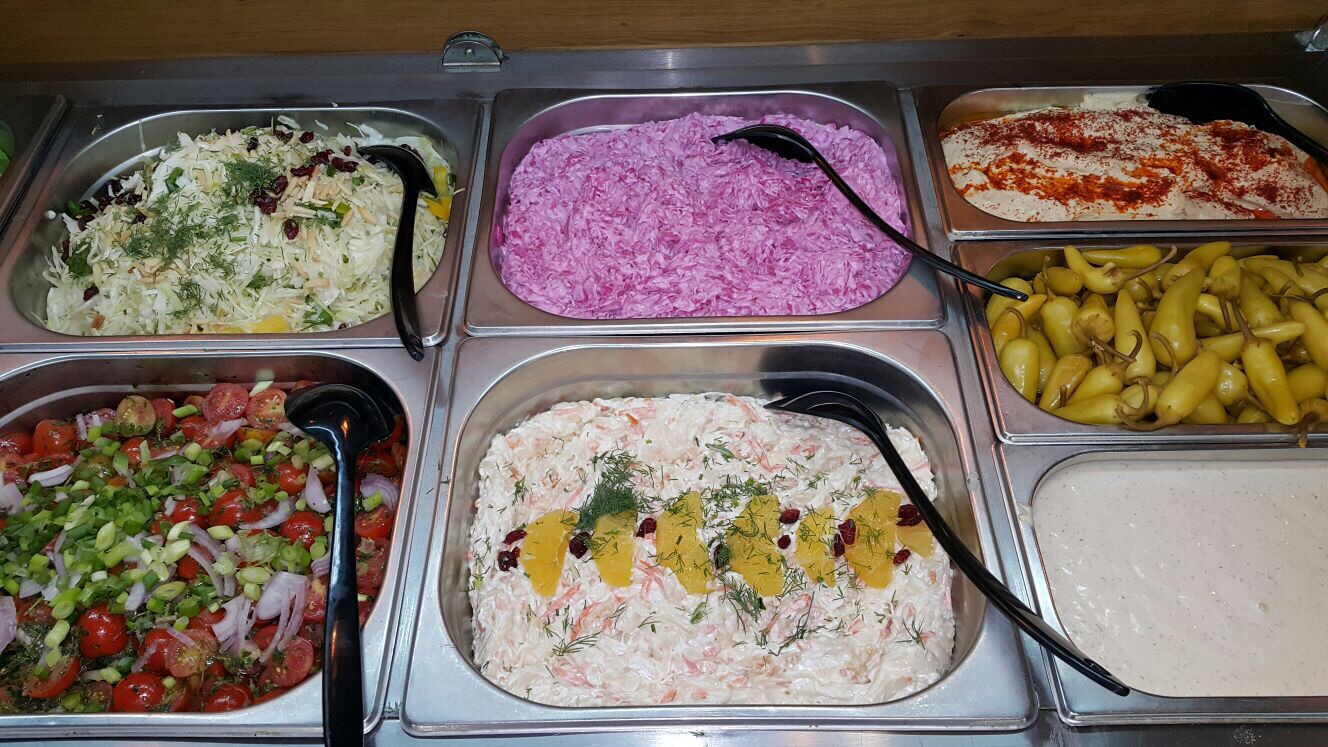 יש סלט בר בהרכבה עצמית וסלטים מורכבים ומבושלים בהכנת השף. מנות צמחוניות וגם קינוח.