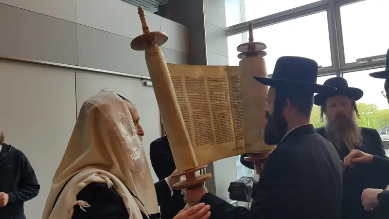 הרה"ח אפרים קעניג רב קהילת ברסלב בצפת ועשרות מבני הקהילה ששהו כמנהגם מידי שנה בימים אלו בסמוך לציון רבי נחמן מברסלב זצוק"ל באומן, חנכו הבוקר את ספר התורה שהוכנס רשמית לשדה התעופה בוריספול בקייב בתיאום עם הנהלת אל על בקייב. ספר התורה ניתן בהשאלה ע"י הקהילה היהודית בנשיאות הרב הראשי לקייב רבי יעקב דב בלייך שליט"א.