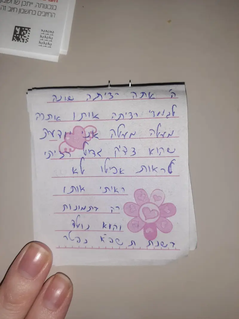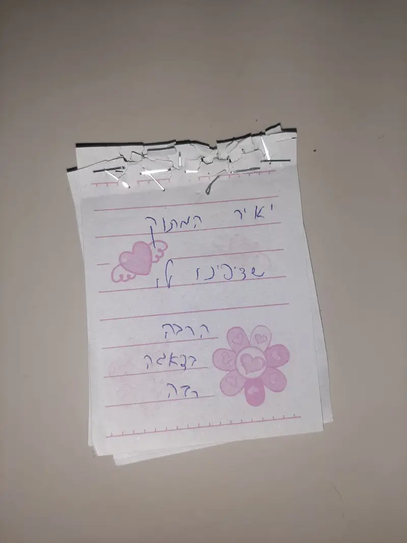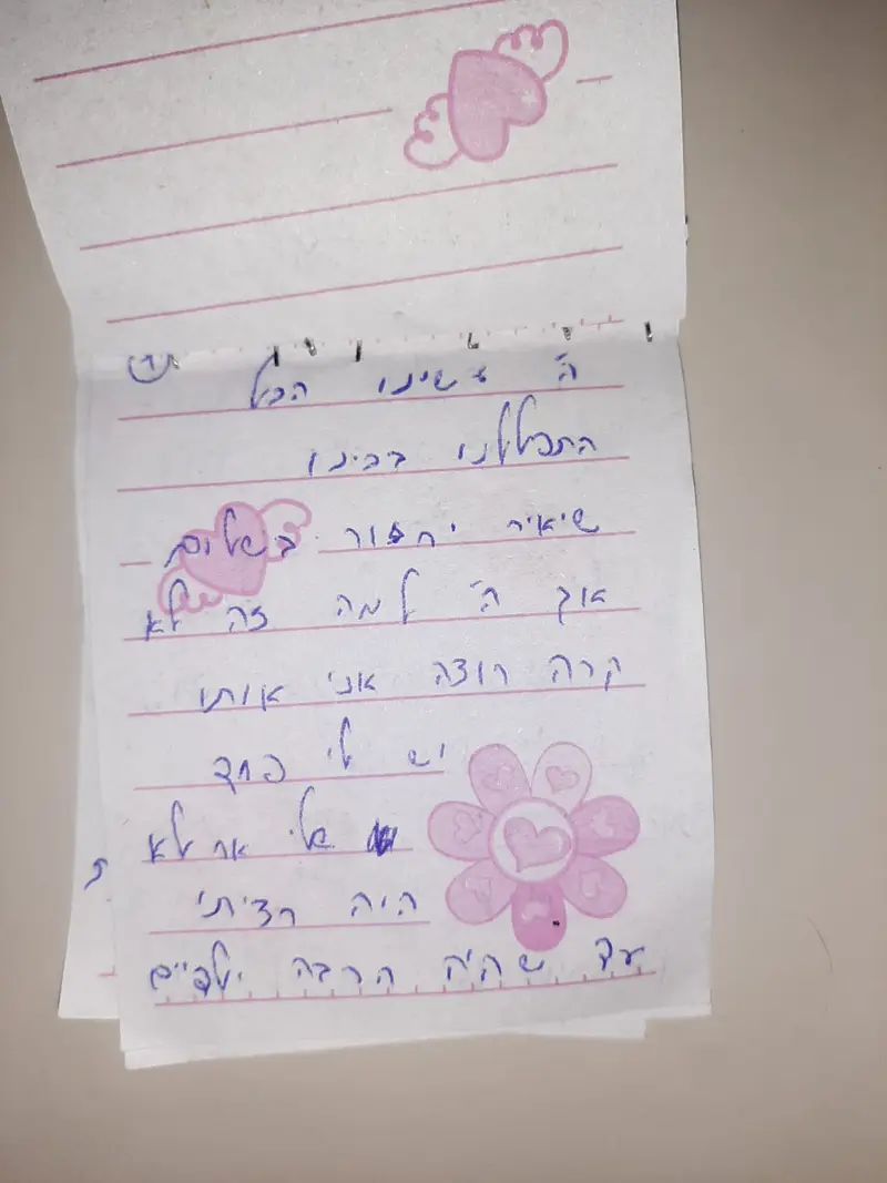 הפתק שכתבה הבת מוריה לוי לבורא עולם לאחר הידיעה על פטירת אחיה התינוק: