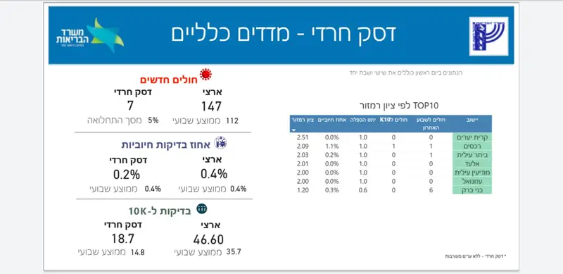 נתוני הקורונה במגזר החרדי: 5% מסך התחלואה הכללית. שיעור הבדיקות החיוביות עומד על 0.2%.