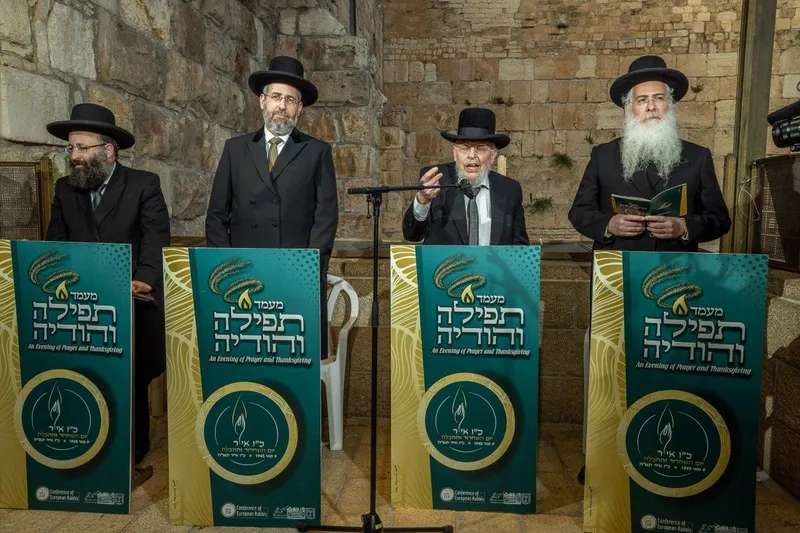 כשלוש מאות רבנים ראשיים אבות בתי דין ודיינים מעשרים וחמש מדינות ברחבי העולם ובהם; מלונדון מנצ'סטר באנגליה, מרומא ומילאנו באיטליה, מפרנקפורט וברלין ובגרמניה, מוינה באוסטריה, מורשה בפולין, מפאריס שטרסבורג ומרסיי שבצרפת, מאמסטרדם בהולנד, ממונטריאול ומניו יורק, מאודסה וקייב שבאוקראינה, מסופיה בבולגריה, מציריך וז'נבה בשווייץ, מבריסל ואנטוורפן בבלגיה, מקישינוב במולדובה ממינסק ופינסק שבבלארוס, ועוד, הצטרפו בשידור חי לתפילה והודיה 'אשר גאלנו מיד צר', ובתחינה לבורא עולם; למען חולי המגיפה המקננת עדיין באירופה ולע"נ קרבנות אסון מירון ז"ל ולרפואת הפצועים הי"ו. בעצרת השתתפו; נציגי הקרמלין, שגרירים וראשי ארגונים יהודיים בעולם.