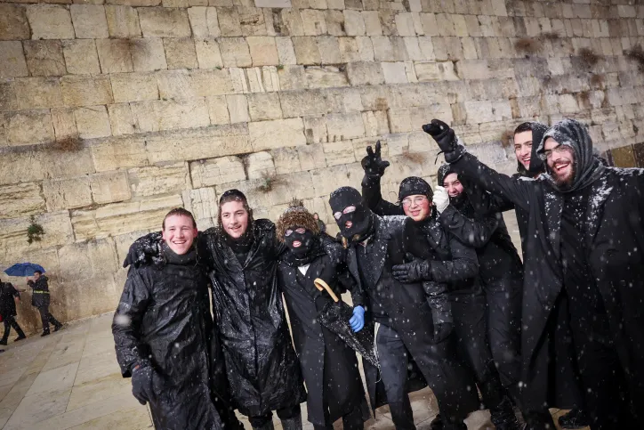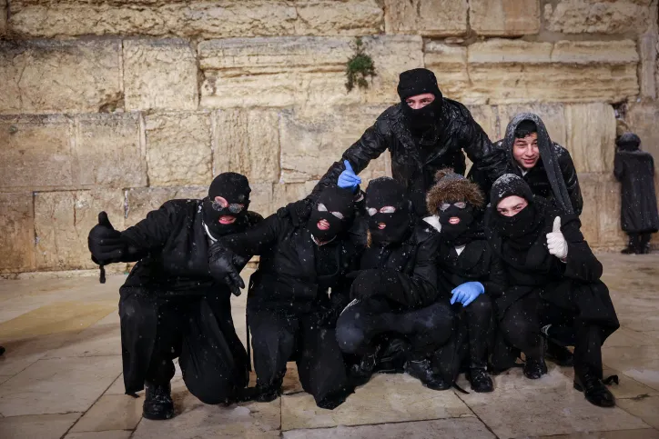 השלג הראשון שיורד כעת בירושלים. תיעוד מהכותל המערבי ומערת המכפלה | צילום: Jamal Awad/Flash90