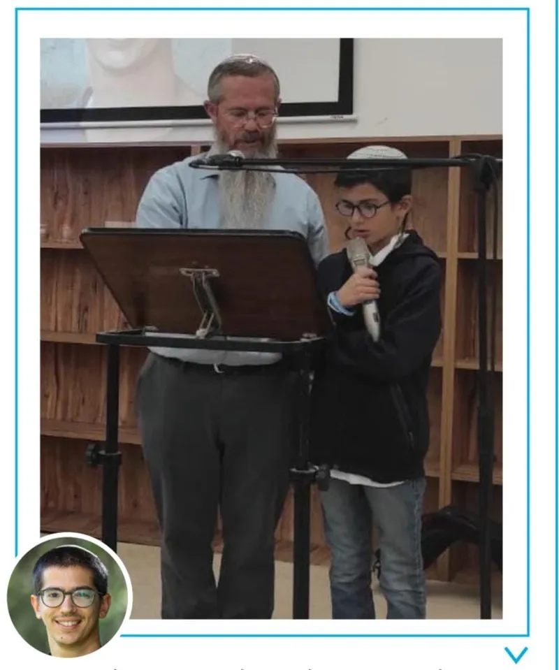 השבוע שלחה לי גילה, אמא של אלקנה, תמונה שבה נראה ילד, בערך בן עשר, עומד מול סטנדר ועושה סיום מסכת. והילד המתוק דומה באופן מצמרר לאביו המתוק שדמותו מופיעה במסך שמאחוריו.