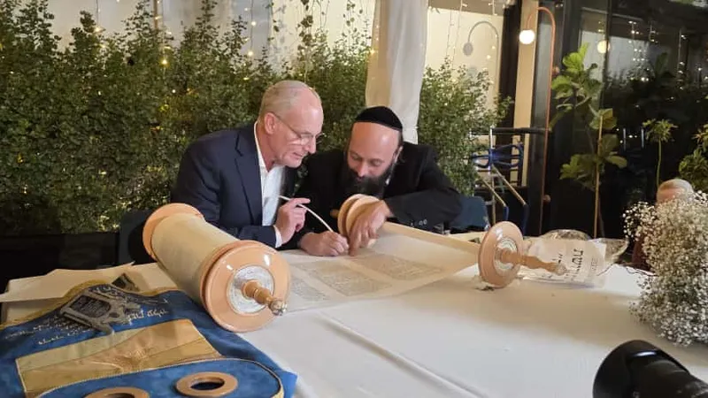 ספר התורה הוכנס לבית המדרש של התוכנית בהשתתפות בני משפחה, חברים ואישי ציבור, בהם ידיד המשפחה ראש הממשלה בנימין נתניהו, שהגיע לכבד את המעמד וכתב אות בספר.