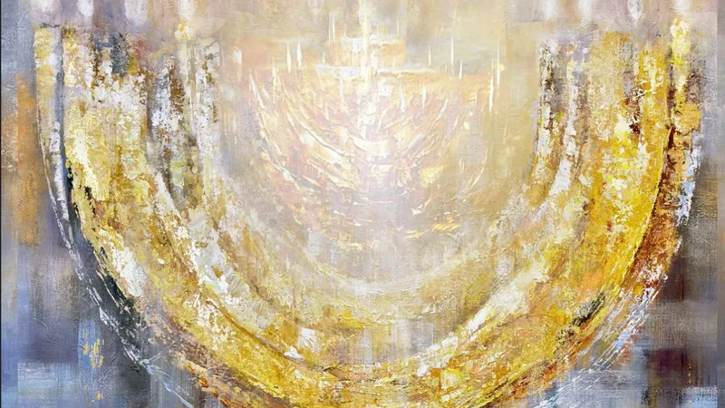 הציור בנוי משכבות של צבע, תנועה ורגש. גווני זהב מתפרצים מתוך עומק כהה, קווים מרומזים מציעים את צורת הקנים, והמנורה כולה נראית חיה, נושמת. החושך שמקיף אותה אינו איום, אלא מקור. כמו בסיפור חנוכה, האור אינו מבטל את החושך – הוא צומח ממנו.