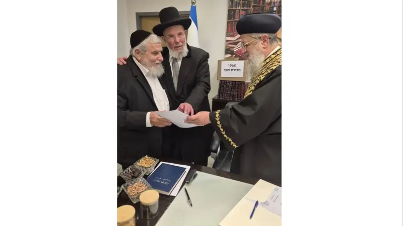 הרב יוסף כהן, יו"ר 'חסדי נעמי' הגיע יחד עם הנהלת הארגון ללשכת הרבנים הראשיים לישראל למכירת החמץ של ארגון החסד 'חסדי נעמי'.