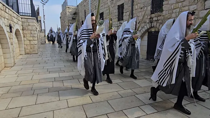 צפו: החסידים ערכו הקפות עם ארבעת המינים