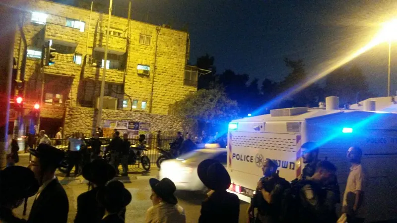מאות אנשי 'בני תורה' יצאו למחות עקב מעצר בחור ישיבה שלא התייצב כצו רבותיו • הבחור נעצר בביתו לאחר שאנשי משטרה צבאית הגיעו ללוכדו • בבני תורה מאיימים: זה רק סנונית, נשבש את מרתון ירושלים