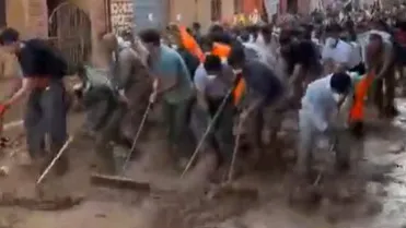 לאחר שמלך ספרד הגיע למקום ונאלץ לסגת נוכח זעם התושבים; מאות אזרחים מנסים לבלום את השיטפונות בוולנסיה | צפו